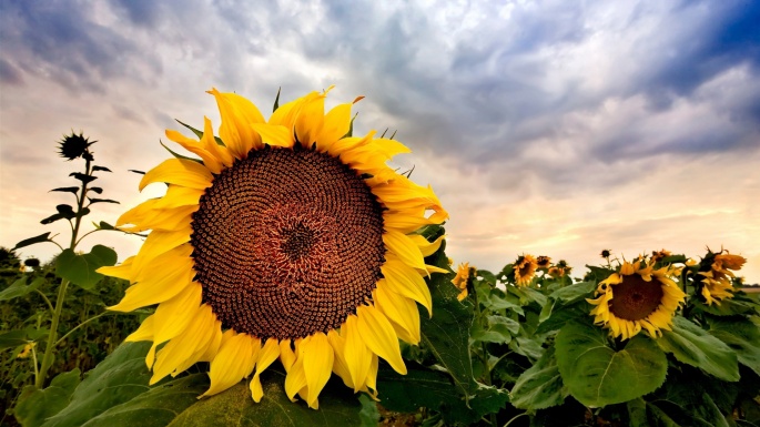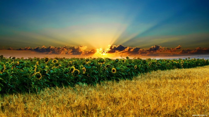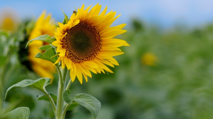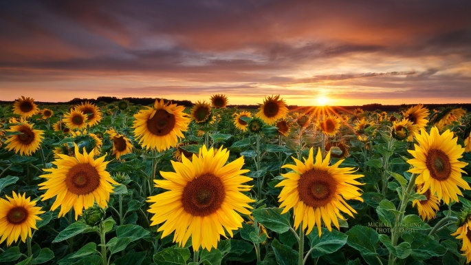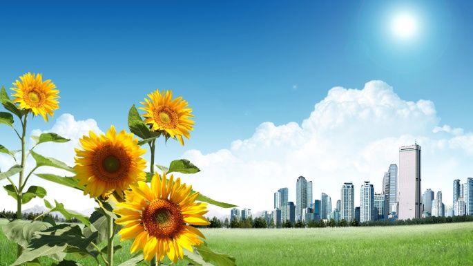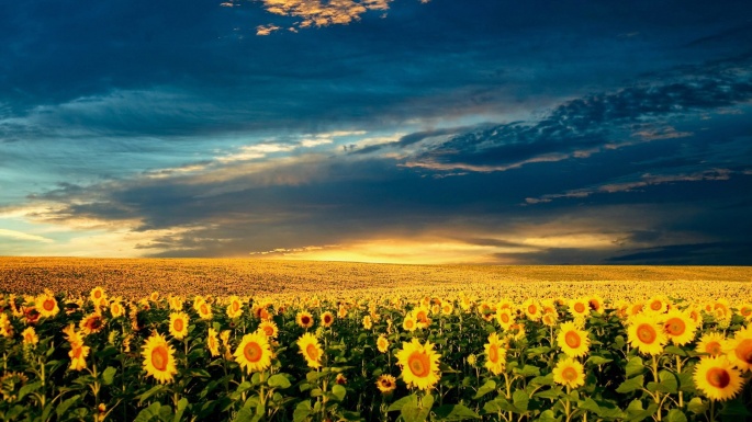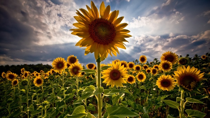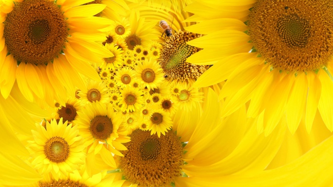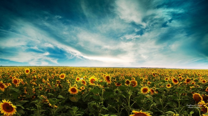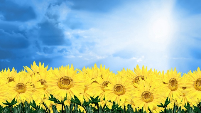 Flowers. Sunflowers. Solar circle, the sky around (100 wallpapers)