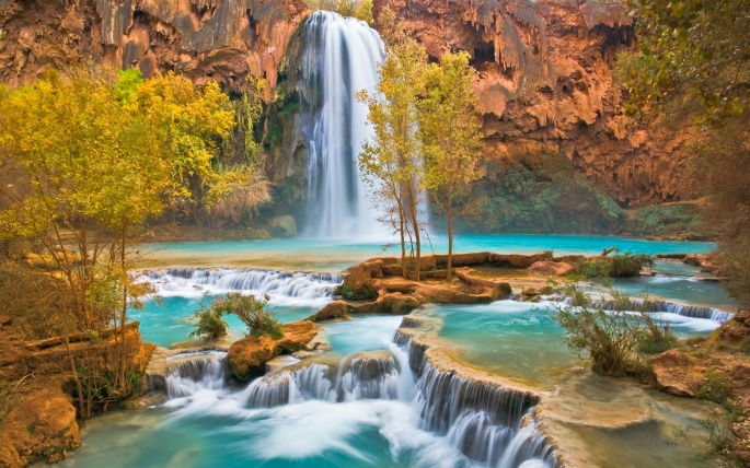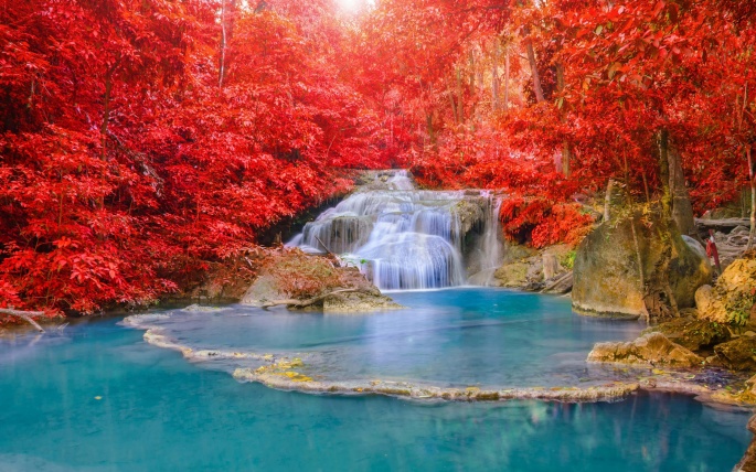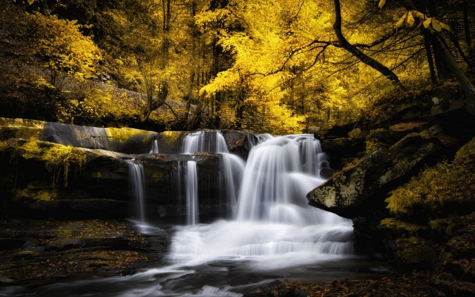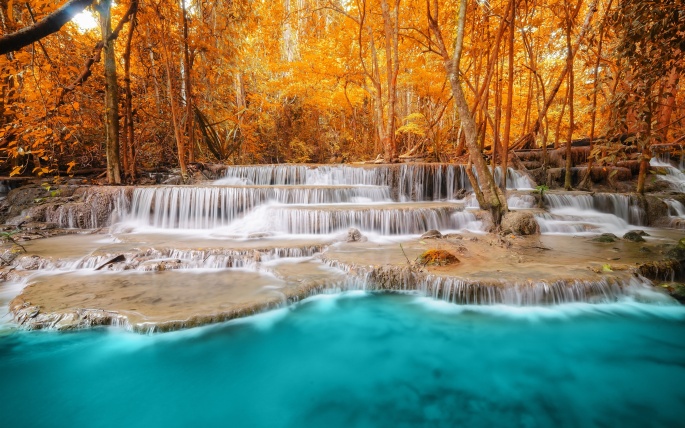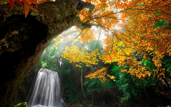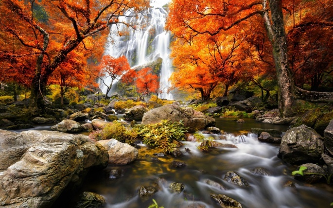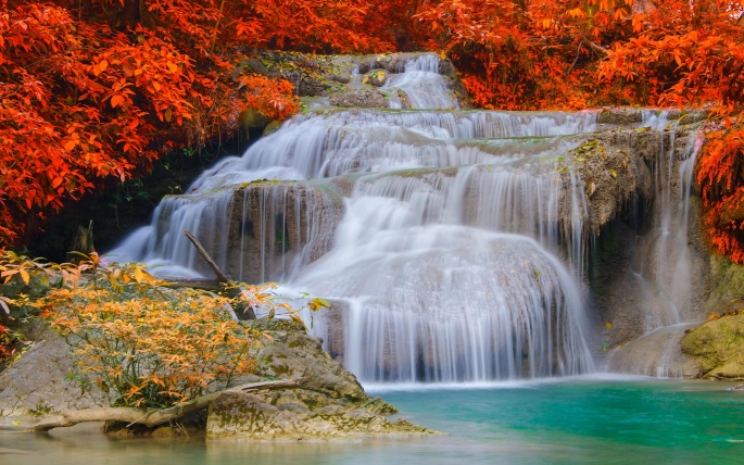 Beautiful wallpapers of autumn waterfalls and their photos in high resolution.